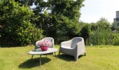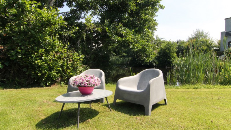 Das Haus ist nach Süden ausgerichtet und verfügt über einen großen Garten am Wasser. Die Büsche spenden den nötigen Schatten. Es gibt zwei Terrassen mit ausreichend Sitzgelegenheiten. Genießen Sie es!