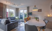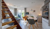 The living room has a cosy sitting and dining area, television and a fireplace. The open kitchen is equipped with a dishwasher and combi oven, among other things. There are three bedrooms, one of which is on the ground floor. The bathroom has a shower, washbasin and toilet. There is an additional toilet with washbasin on the first floor. Free high-speed internet and more than 30 digital TV channels. The surface area is approximately 75 m².