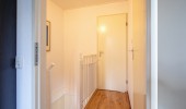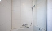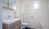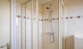 Op de eerste verdieping een badkamer met douche, toilet met wastafel