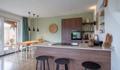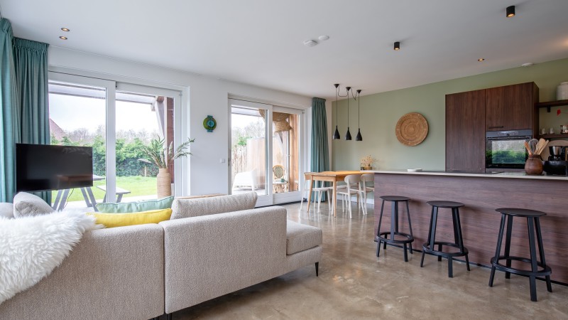 De open keuken is van alle gemakken voorzien en beschikt o.a. een koelkast met vriesvak en inductiekookplaat.
