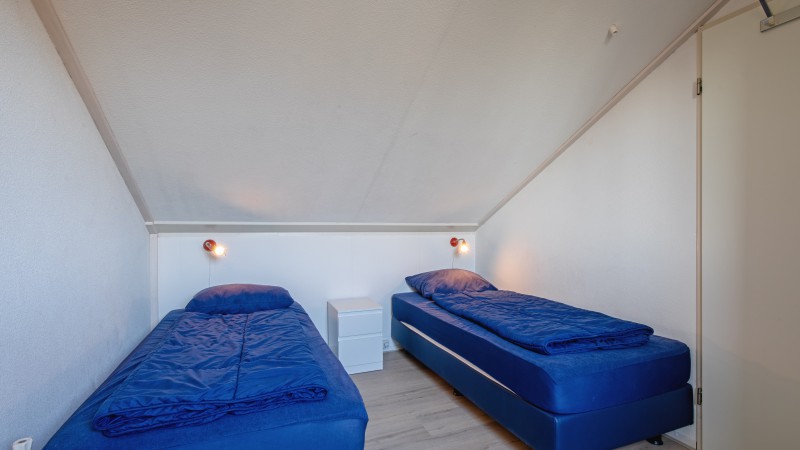 3 slaapkamers (waarvan 1 op de begane grond) met 6 eenpersoonsbedden en 1 kinderbedje