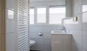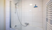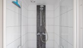 Op de eerste verdieping een tweede badkamer met douche, toilet met wastafel