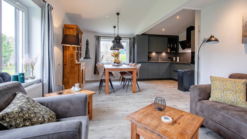 woonkamer met zitgedeelte en eettafel