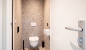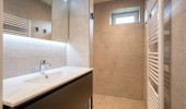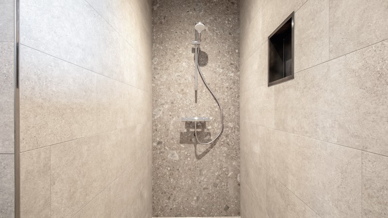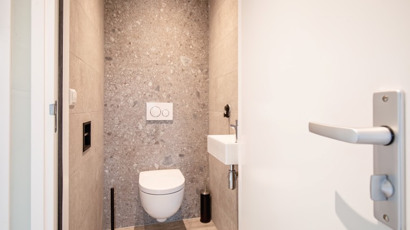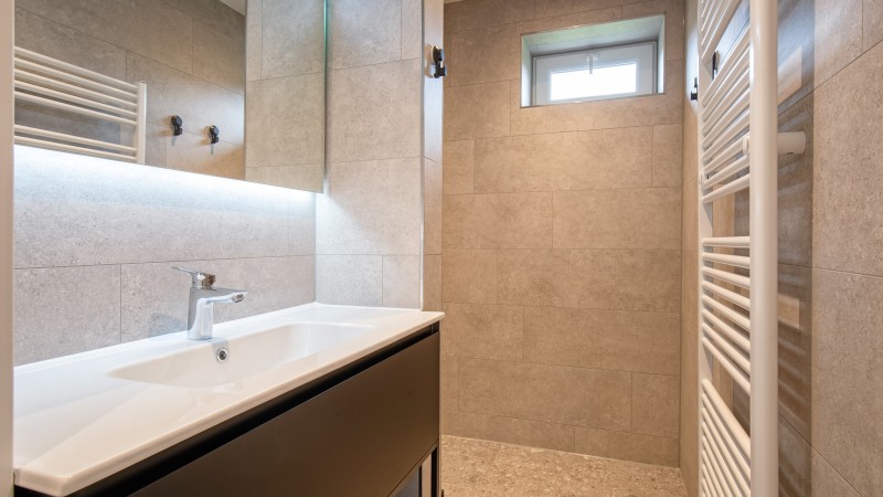 badkamer met douche en wastafel, separaat toilet