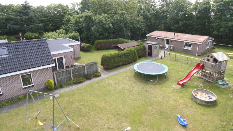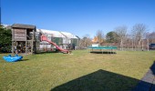 speeltoestellen: schommel, trampoline, wip, ringen (gebruik op eigen risico)