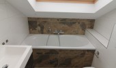 Zweites Badezimmer mit Badewanne mit Dusche, Waschbecken und Toilette (erster Stock)