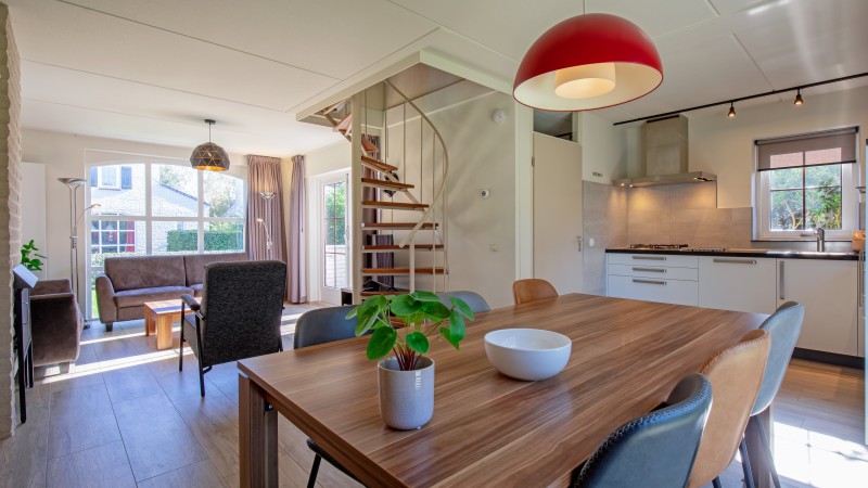 Die Nummer 537 ist freistehend und verfügt über einen großen Garten mit Terrasse. Das Wohnzimmer hat eine gemütliche Sitz- und Essecke, einen Fernseher und einen Kamin. Die offene Küche ist unter anderem mit einem Geschirrspüler und einem Kombi-Backofen ausgestattet. Es gibt 3 Schlafzimmer, davon 1 im Erdgeschoss. Das Badezimmer im Erdgeschoss ist mit einer Badewanne, einem Waschbecken und einer Toilette ausgestattet. Im ersten Stock befindet sich ein Badezimmer mit Dusche, Waschbecken und Toilette. Kostenloses Highspeed-Internet und mehr als 30 digitale TV-Sender. Die Fläche beträgt ca. 98 m².
