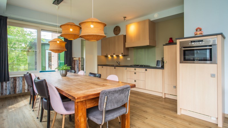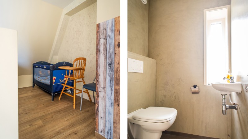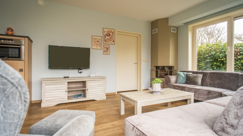 Slufterhoek number 6 has a large livingroom, with fireplace (bags of firewood are available at the reception) and sitting area. A big dining table for 10 people is present aswell. The cottage is wheelchair friendly.