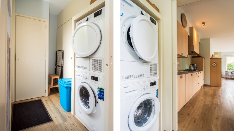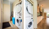You can find a washing machine and a tumble dryer in the storage space.