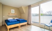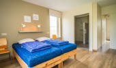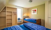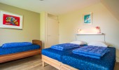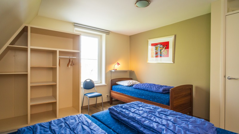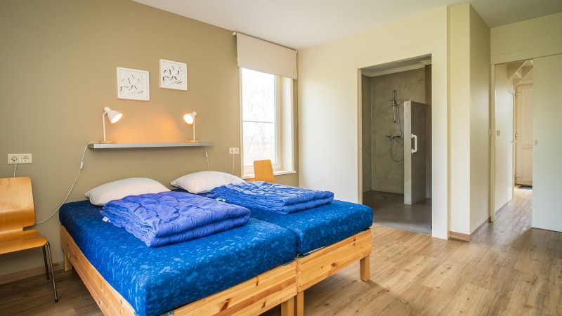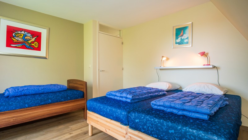 There are 4 bedrooms, of which one you can find on the ground level en 3 on the first floor. On 2 of the bedrooms on the first floor you can find 3 single beds. On both the ground level and the first floor you can find a bathroom with shower and toilet. The bathroom on groundlevel is accesibly with a wheelchair. There are a total of 10 single beds, with quils and pillows included. The renting of bed linnen is not mandatory, but if you desire to do so it costs € 10,00 per bed.