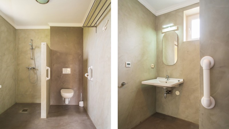 On the roof you can find solarpanels which heat the water for the shower, also the toilets are being flushed with rainwater. As you can see, the environment has been taken in consideration.