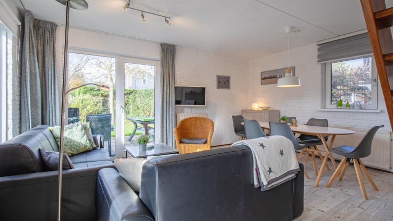 This bungalow is located at Villapark Residentie Texel on Roggeslootweg near De Cocksdorp, with the Krimbos forest and the beach nearby. The bungalows at this park are equipped with many conveniences, and there are various facilities at the adjacent De Krim park (for a fee), such as a golf course, swimming pool, children's playground and more.