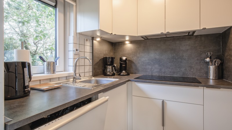 fully equipped kitchen with Senseo coffee machine
