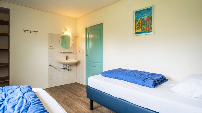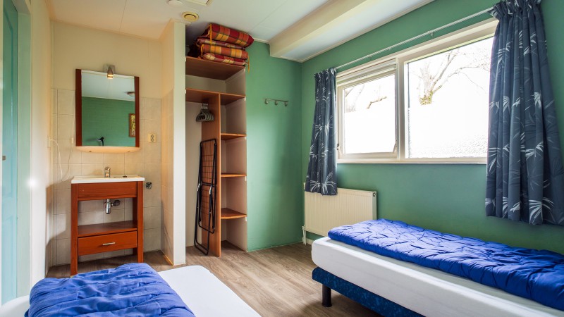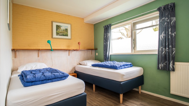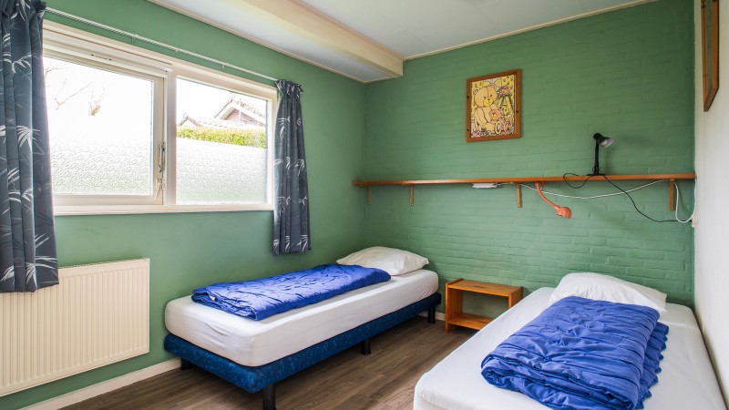 -Er zijn 2 slaapkamers met in totaal 4 x eenpersoonsbedden