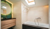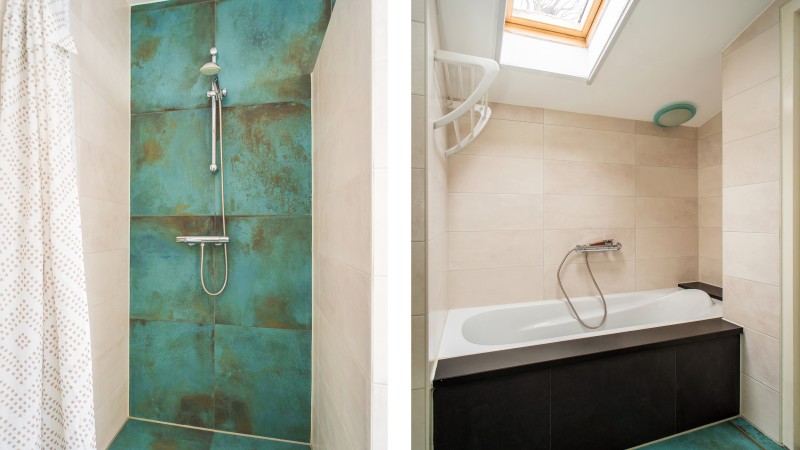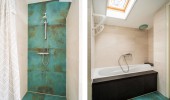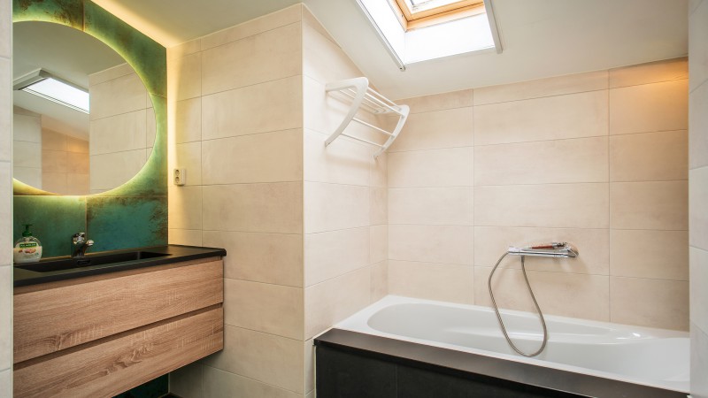 -De badkamer is voorzien van toilet, douche, ligbad en wastafel
